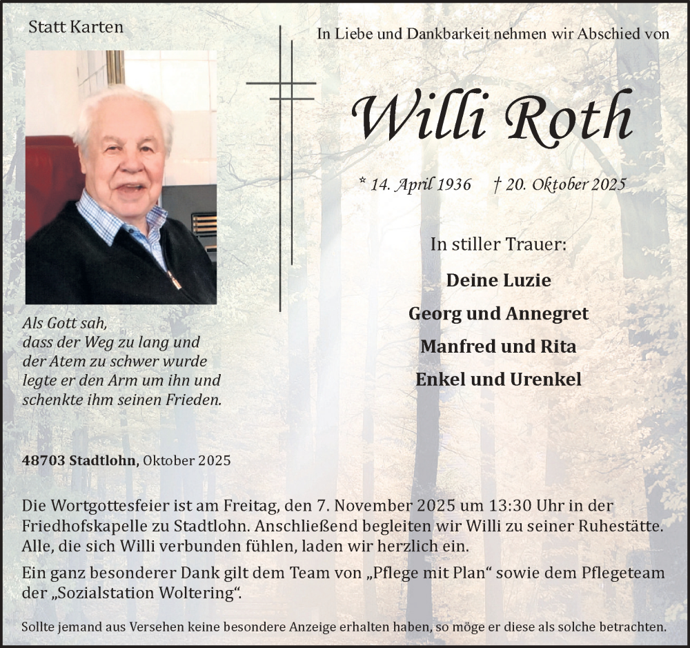Hier finden Sie alle Traueranzeigen aus der Zeitung, die bisher für Willi Roth erschienen sind. Weitere Traueranzeigen, die in der Zeitung erscheinen, werden hier ebenfalls aufgelistet