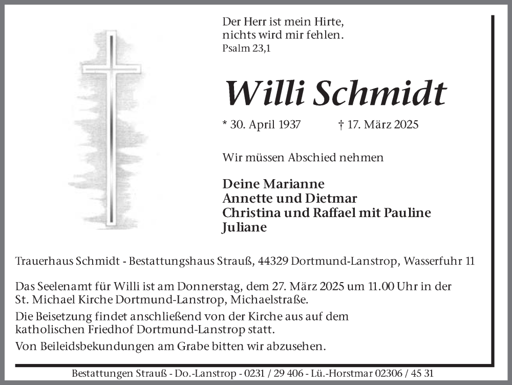 Hier finden Sie alle Traueranzeigen aus der Zeitung, die bisher für Willi Schmidt erschienen sind. Weitere Traueranzeigen, die in der Zeitung erscheinen, werden hier ebenfalls aufgelistet